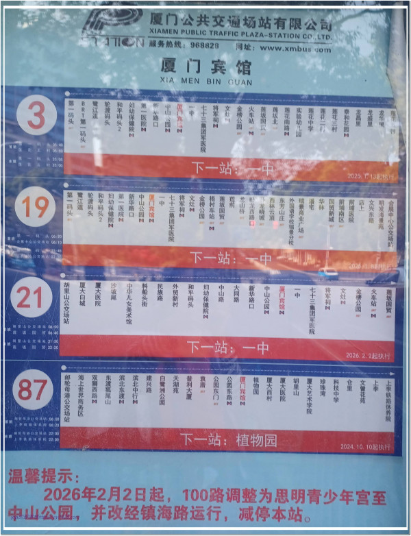 廈門這邊的公車都是1元,無分段價位